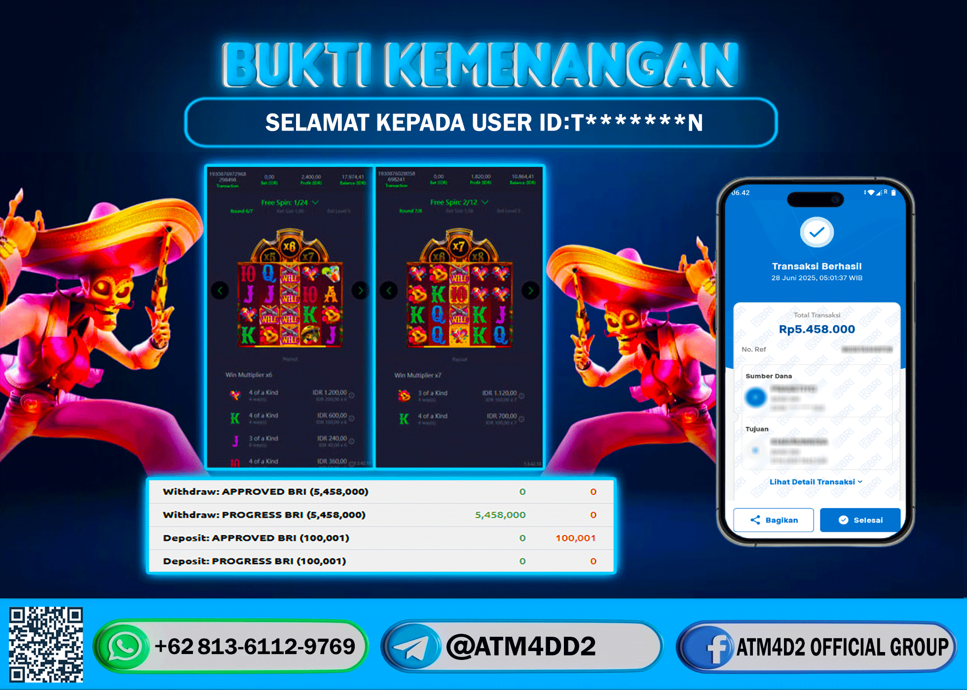 ATM4D2 dikenal sebagai situs terpercaya yang selalu menghadirkan pengalaman bermain slot online yang aman, fair, dan berlisensi resmi. Di sini, kami tidak hanya sekadar memberikan janji, tapi bukti nyata berupa slip kemenangan yang dapat Anda lihat secara langsung.