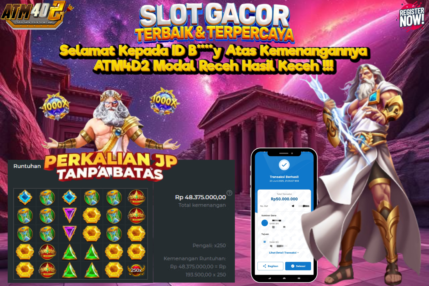 ATM4D2 dikenal sebagai situs terpercaya yang selalu menghadirkan pengalaman bermain slot online yang aman, fair, dan berlisensi resmi. Di sini, kami tidak hanya sekadar memberikan janji, tapi bukti nyata berupa slip kemenangan yang dapat Anda lihat secara langsung.