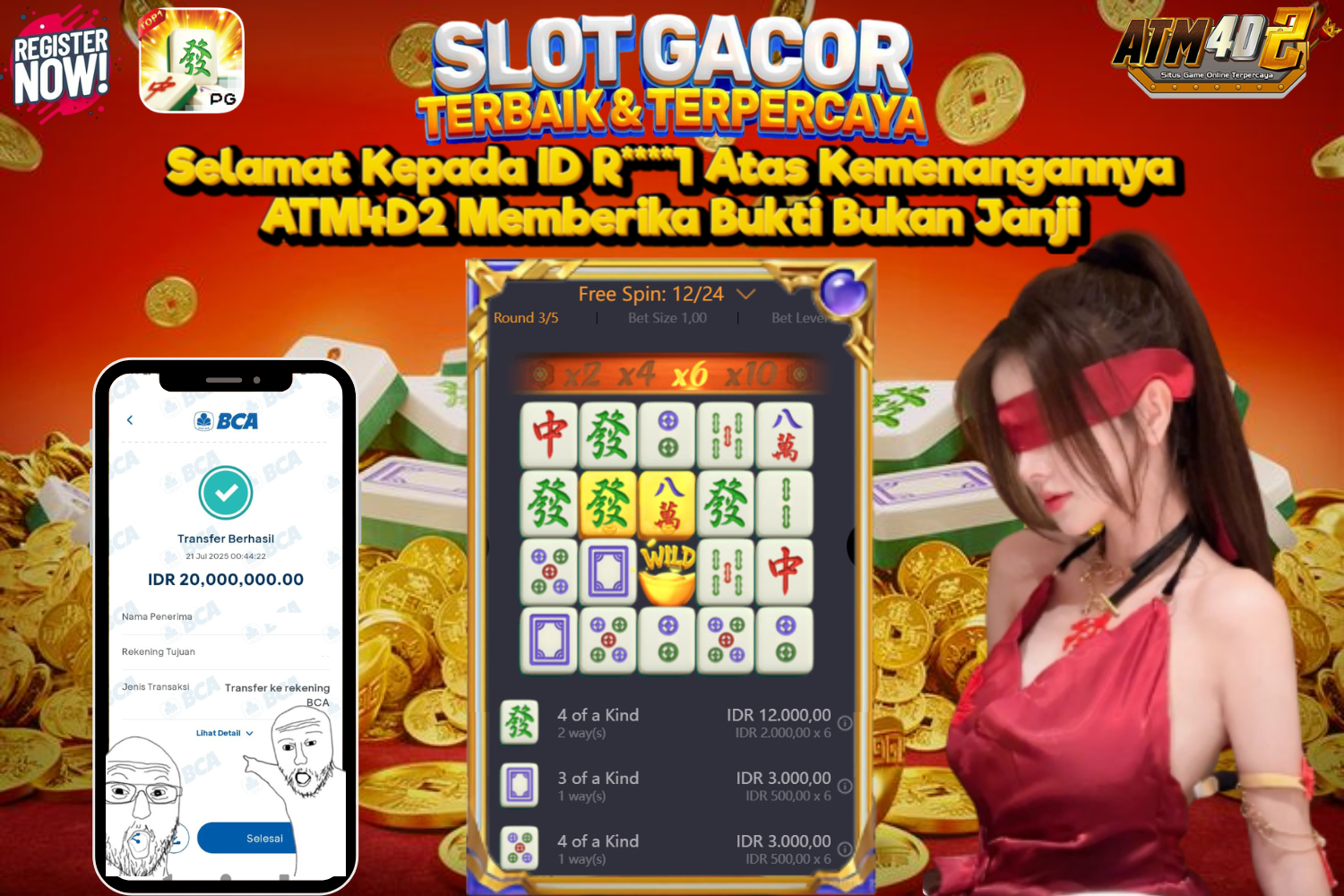 ATM4D2 dikenal sebagai situs terpercaya yang selalu menghadirkan pengalaman bermain slot online yang aman, fair, dan berlisensi resmi. Di sini, kami tidak hanya sekadar memberikan janji, tapi bukti nyata berupa slip kemenangan yang dapat Anda lihat secara langsung.