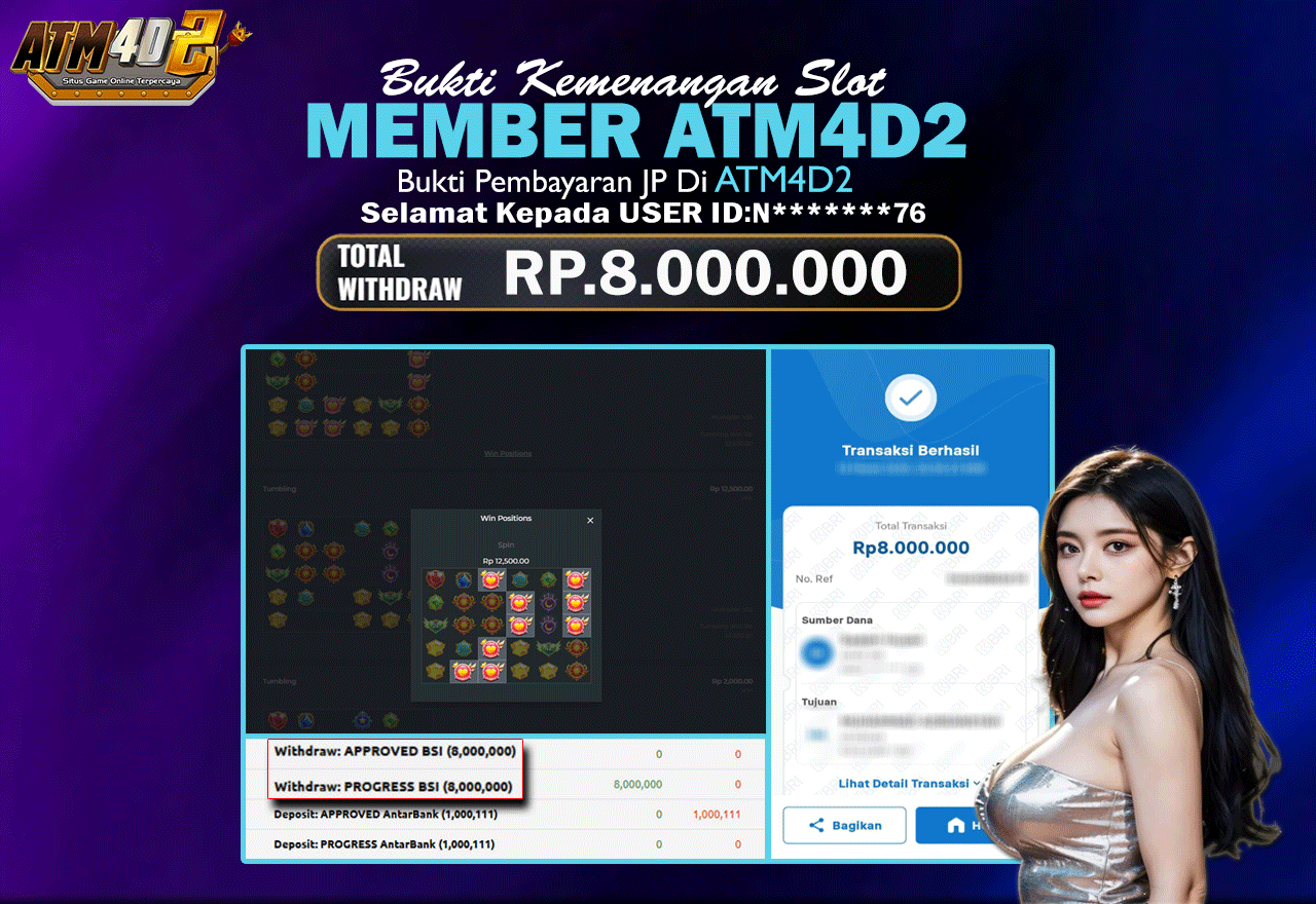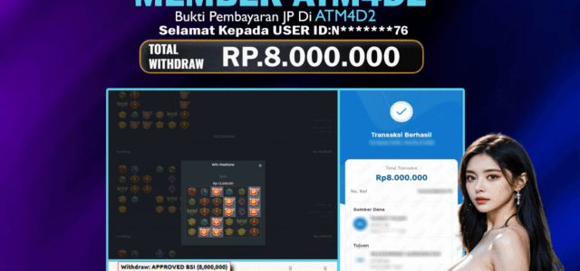 ATM4D2 dikenal sebagai situs terpercaya yang selalu menghadirkan pengalaman bermain slot online yang aman, fair, dan berlisensi resmi. Di sini, kami tidak hanya sekadar memberikan janji, tapi bukti nyata berupa slip kemenangan yang dapat Anda lihat secara langsung.