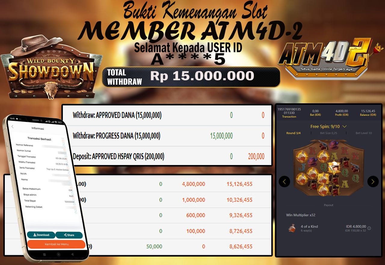 ATM4D2 dikenal sebagai situs terpercaya yang selalu menghadirkan pengalaman bermain slot online yang aman, fair, dan berlisensi resmi. Di sini, kami tidak hanya sekadar memberikan janji, tapi bukti nyata berupa slip kemenangan yang dapat Anda lihat secara langsung.