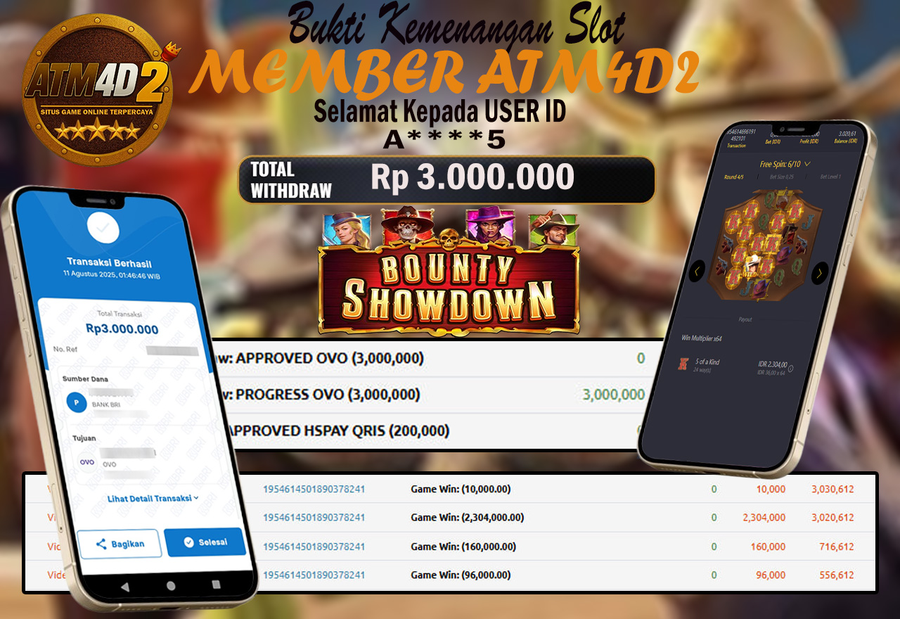 ATM4D2 dikenal sebagai situs terpercaya yang selalu menghadirkan pengalaman bermain slot online yang aman, fair, dan berlisensi resmi. Di sini, kami tidak hanya sekadar memberikan janji, tapi bukti nyata berupa slip kemenangan yang dapat Anda lihat secara langsung.